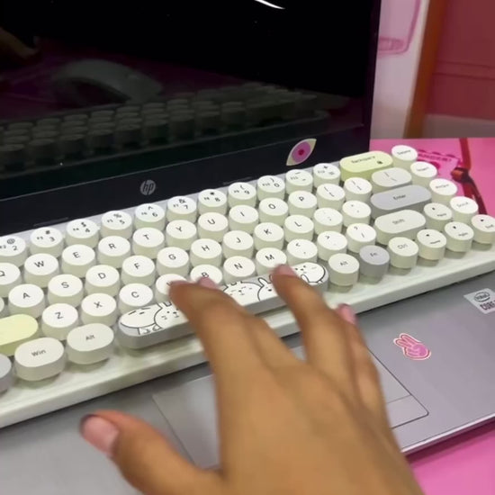 Este elegante teclado inalámbrico de 31 × 10 cm es la opción perfecta para quienes buscan comodidad en tamaño compacto sin renunciar al estilo. Su diseño ergonómico y liviano lo hace ideal para portátiles y espacios reducidos. Incluye mouse de 10 cm a juego, ambos funcionan con pilas (incluidas). Con teclas redondeadas tipo máquina de escribir y detalles en tonos pastel, ¡trabajar o estudiar será una experiencia más linda y funcional!